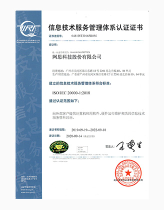 网思科技凭借雄厚的技术实力成功获得CMMI5、CCRC、6个ISO标准认证等资质,并被授予国家专精特新小巨人企业、国家高新技术企业、广东省专精特新中小企业和广州未来独角兽创新企业等多项政府和行业的重要荣誉。